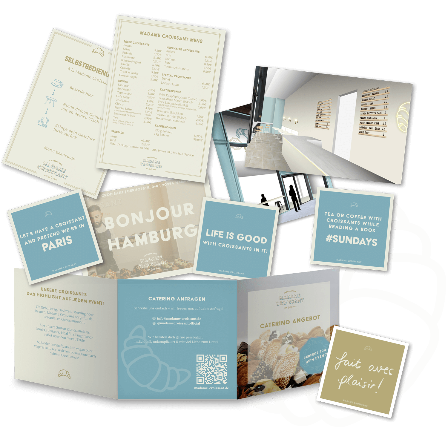 Ob Speisekarten, Sticker, Plakate oder Instagram-Stories: alles trägt den typischen Madame-Croissant-Charme – verspielt, sympathisch und immer très chic.
